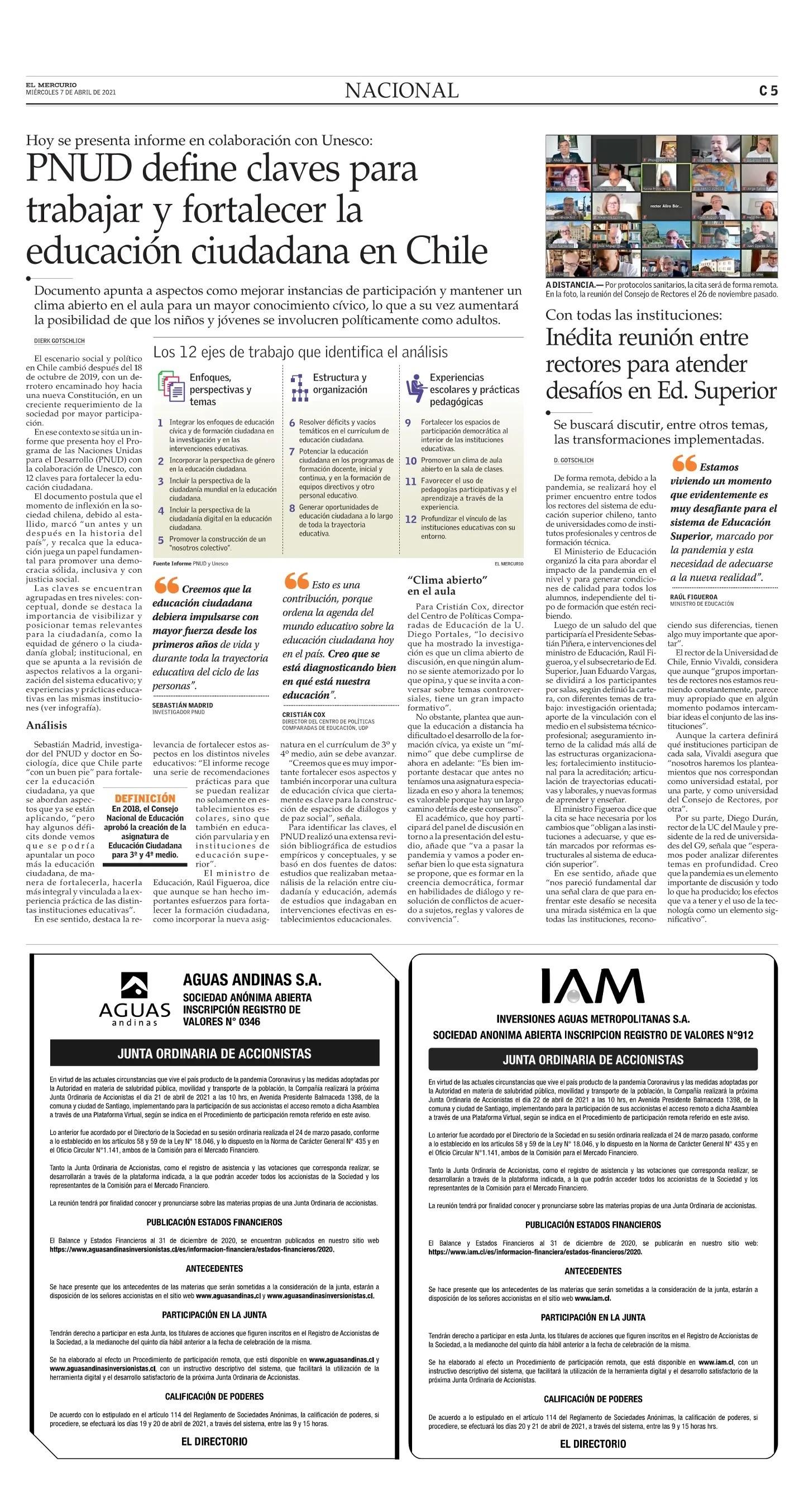 PNUD define claves para trabajar y fortalecer la educación ciudadana en Chile